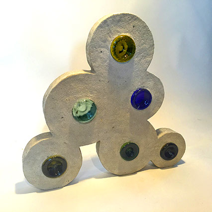 Sharon Pierce McCullough is a self taught artist and sculptor. She works from her historic stone home in Cashtown. Her use of vivid colors has always been one of the most striking aspects of her work, with geometrics being the most repetitive theme. An underlying thread of “fun” has always permeated her works.